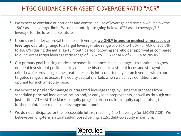 HTGC’s GUIDANCE FOR ASSET COVERAGE RATIO “ACR”HTGC’s GUIDANCE FOR ASSET COVERAGE RATIO “ACR”