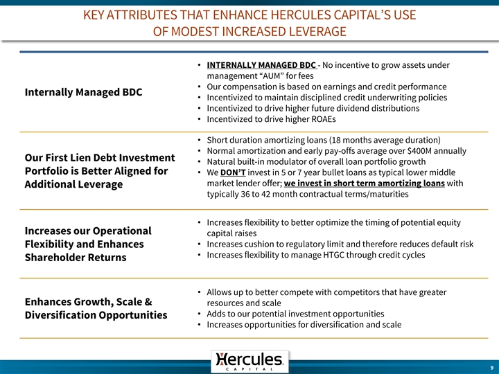 KEY ATTRIBUTES THAT ENHANCE HERCULES CAPITAL’S USE OF INCREMENTAL LEVERAGEKEY ATTRIBUTES THAT ENHANCE HERCULES CAPITAL’S USE OF INCREMENTAL LEVERAGE